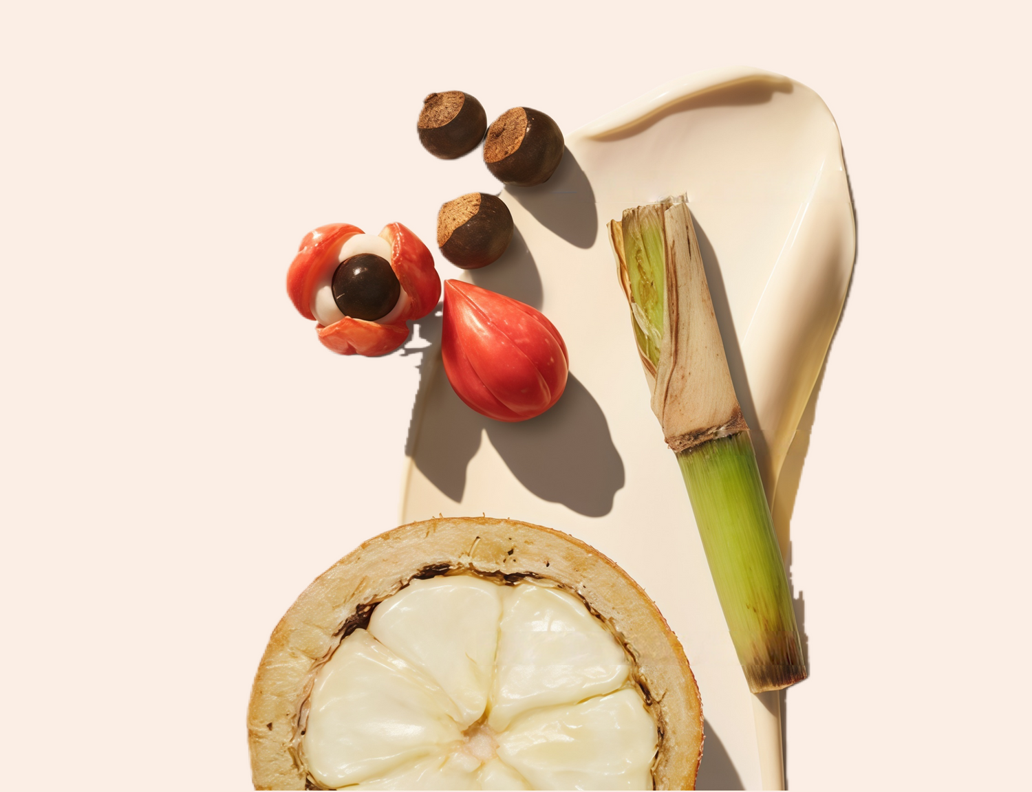Aqua (Water, Eau), Methyl Glucose Sesquistearate, Phenyl Trimethicone, Dodecane, Caprylic/Capric Triglyceride, Parfum (Fragrance), Cetearyl Alcohol, Glyceryl Stearate Citrate, Glyceryl Caprylate, Glycerin, Cetyl Alcohol, Paullinia Cupana (Guaraná) Seed Extract, Theobroma Grandiflorum (Cupuaçu) Seed Butter, Cocos Nucifera (Coconut) Oil, Euterpe Oleracea Fruit (Açaí) Oil, Bertholletia Excelsa (Brazil Nut) Seed Oil, Sodium Hyaluronate, Squalane, Ilex Guayusa Leaf Extract, Ilex Paraguariensis Leaf Extract, Daucus Carota Sativa (Carrot) Seed Oil, Bixa Orellana Seed Extract, Tocopherol, Mica, Sodium Phytate, Xanthan Gum, Sorbitan Isostearate, Sodium Stearoyl Glutamate, Hydroxyethyl Acrylate/Sodium Acryloyldimethyl Taurate Copolymer, Ethylhexylglycerin, Phenoxyethanol, Benzyl Alcohol, Benzyl Salicylate, Citral, Coumarin, Hydroxycitronellal, Limonene, Tin Oxide, CI 77891 (Titanium Dioxide)Contains nuts- has Brazil Nut